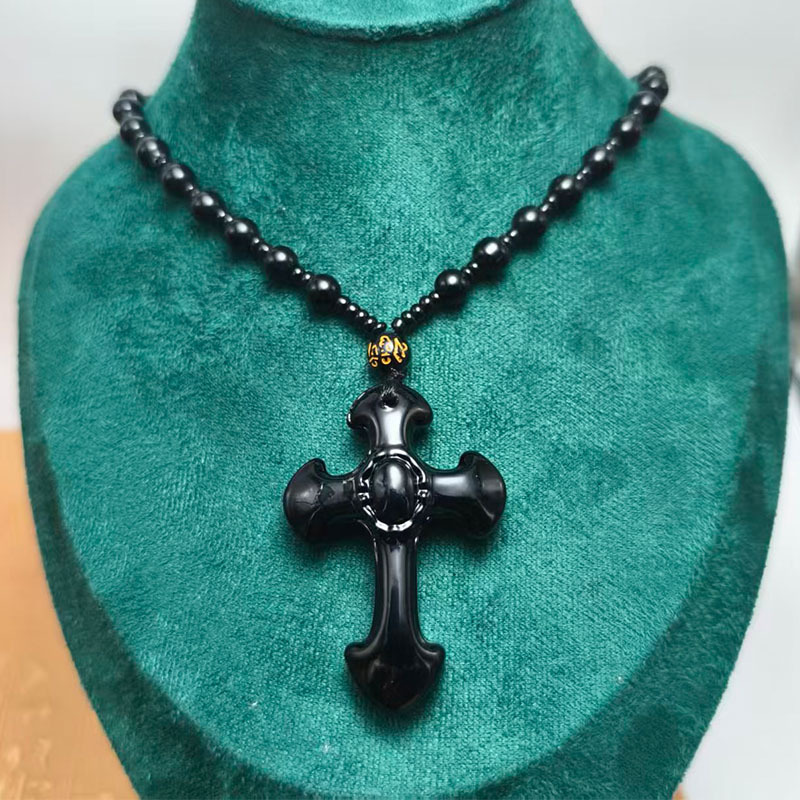 Cross Pendant Imitation Obsidian Sweater Chain Pendant Men and Women Couple Necklace Pendant Birthday Gift Wholesale