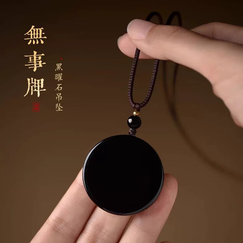 Obsidian Wuxi Pendant Men's Round Pendant Women's Jewelry Animal Year Gift Engraved Amulet Necklace