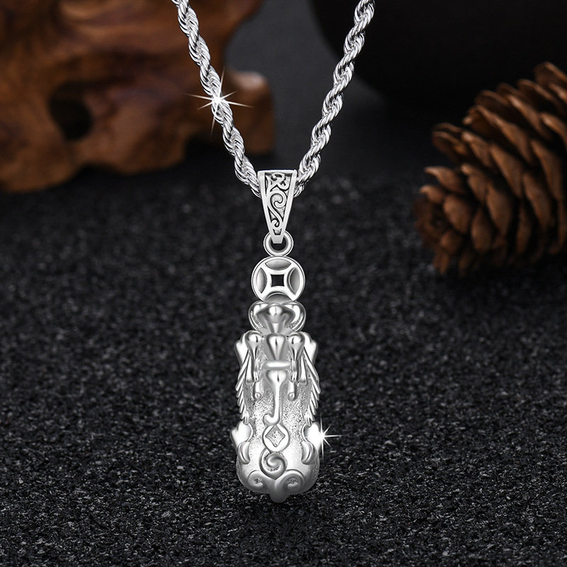 Vintage old antique domineering brave pendant Thai silver necklace male personality trend male projection god of wealth first jewelry
