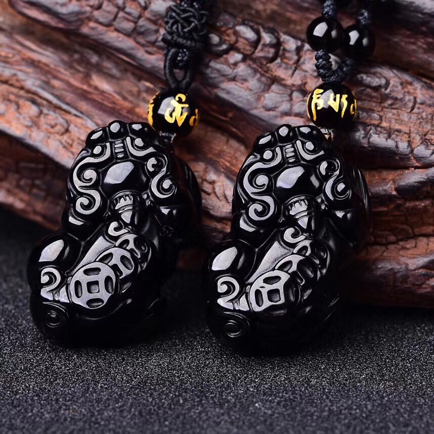 Natural pure black obsidian three money brave pendant for men and women natural obsidian back three money brave pendant wholesale