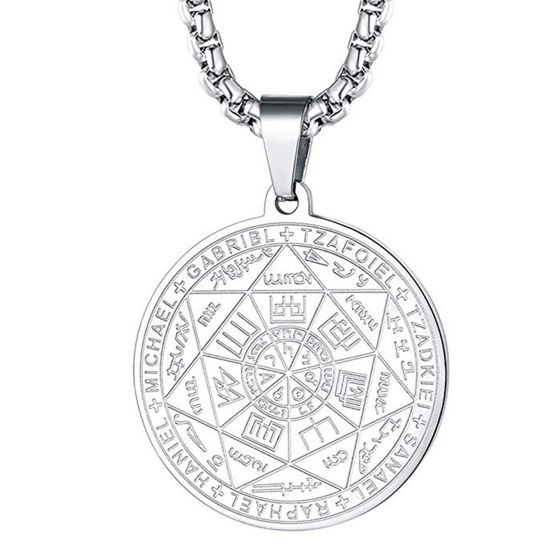 European and American Round Pendant Necklace Men's New Retro Rune Pendant Stainless Steel Disc Necklace Sweater Chain Wholesale