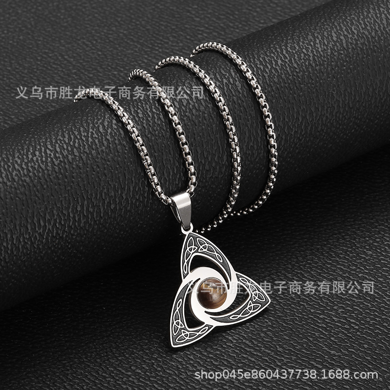 Cross-border Viking three-knot women's necklace men's stainless steel Tiger Eye Stone Irish Celtic lucky charm necklace