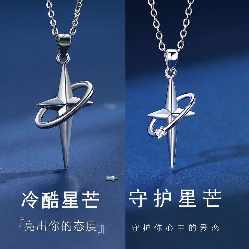 Star Mans Cross Necklace Men's Fashionable Sexy Wind Pendant Men's Woolen Chain Guardian Star Mans Couple Necklace