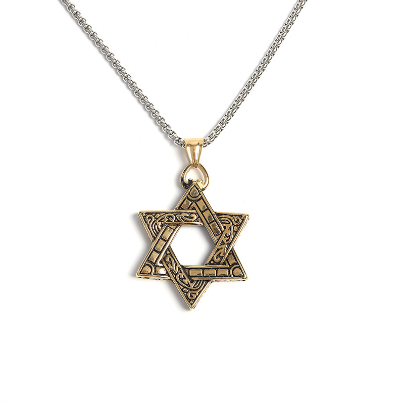 European and American Retro Double-Sided Six-Pointed Star Pendant Fashion Versatile Student Pendant Personalized Titanium Steel Men's Pendant Necklace