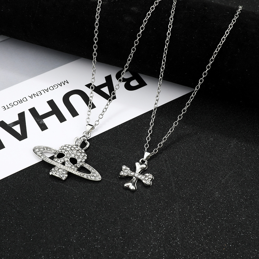 Empress Double Layer Cross Skull Saturn Necklace Punk Style High-End Sweater Chain for Men and Women Old Money Style