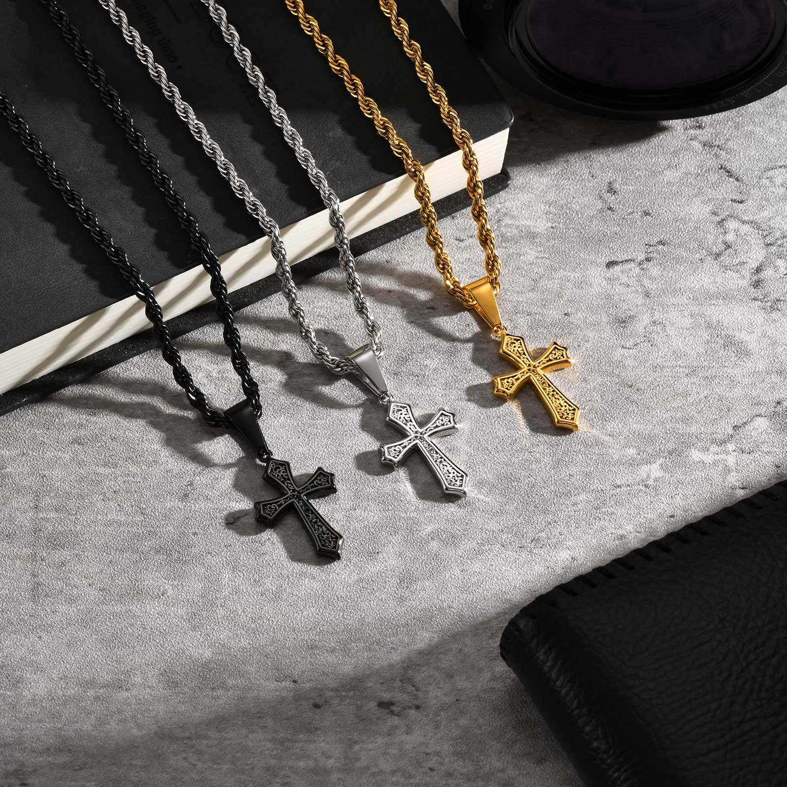 1 Piece Personalized Fashion Simple Cross Pendant with Card and Gift Box Men's Necklace
