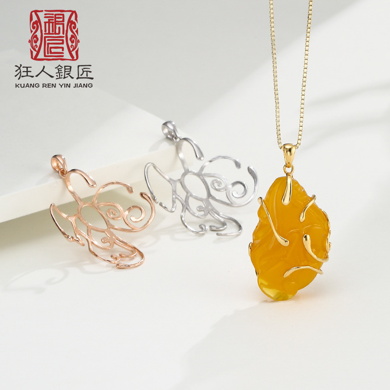 S925 Silver Special-Shaped Universal Pendant Empty Holder for Men and Women with Asymmetrical Pendant Buckle Accessories Beeswax Necklace Holder