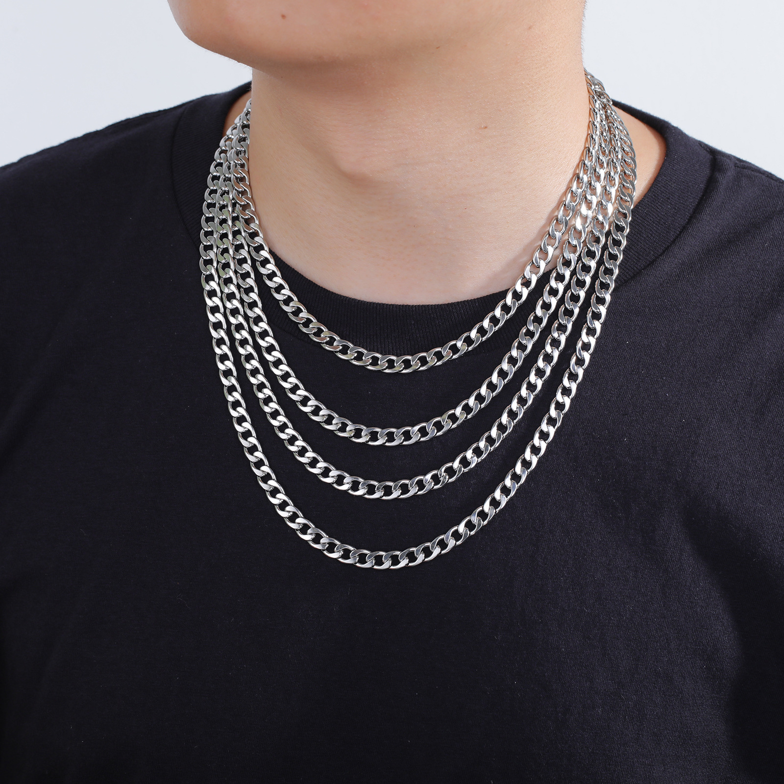 Cross border long edge Cuban chain necklace men women classic punk stainless steel color metal wide chain jewelry wholesale