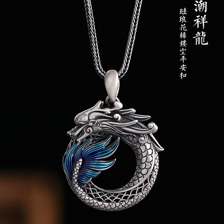 Zodiac dragon pendant necklace men's and women's retro ethnic style safety buckle pendant Dragon year birth year pendant national fashion