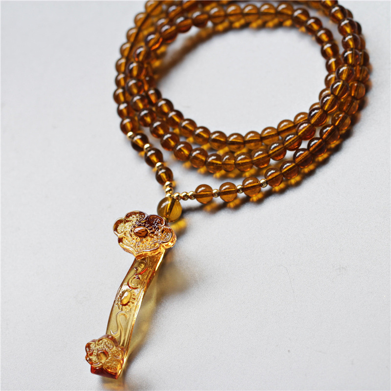 Wholesale ancient glass annual ruyi pendant men's and women's 108 glass beads necklace pendant antique ruyi