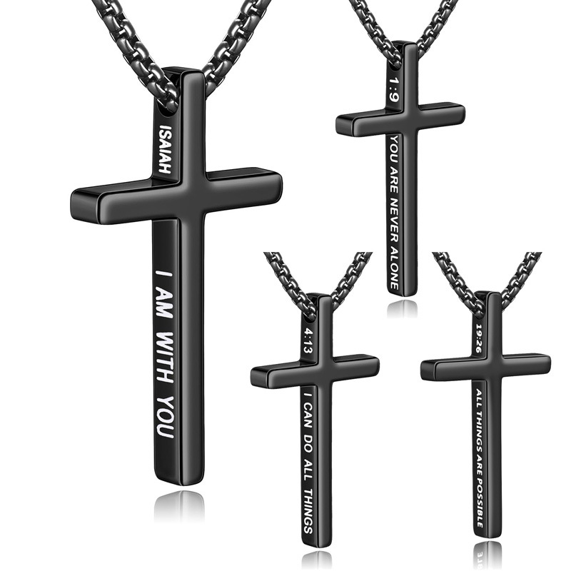 Bible Verse Cross Cross Cross Cross Hot Sale Titanium Steel Bible Cross Pendant Necklace Men's Inspirational Jewelry