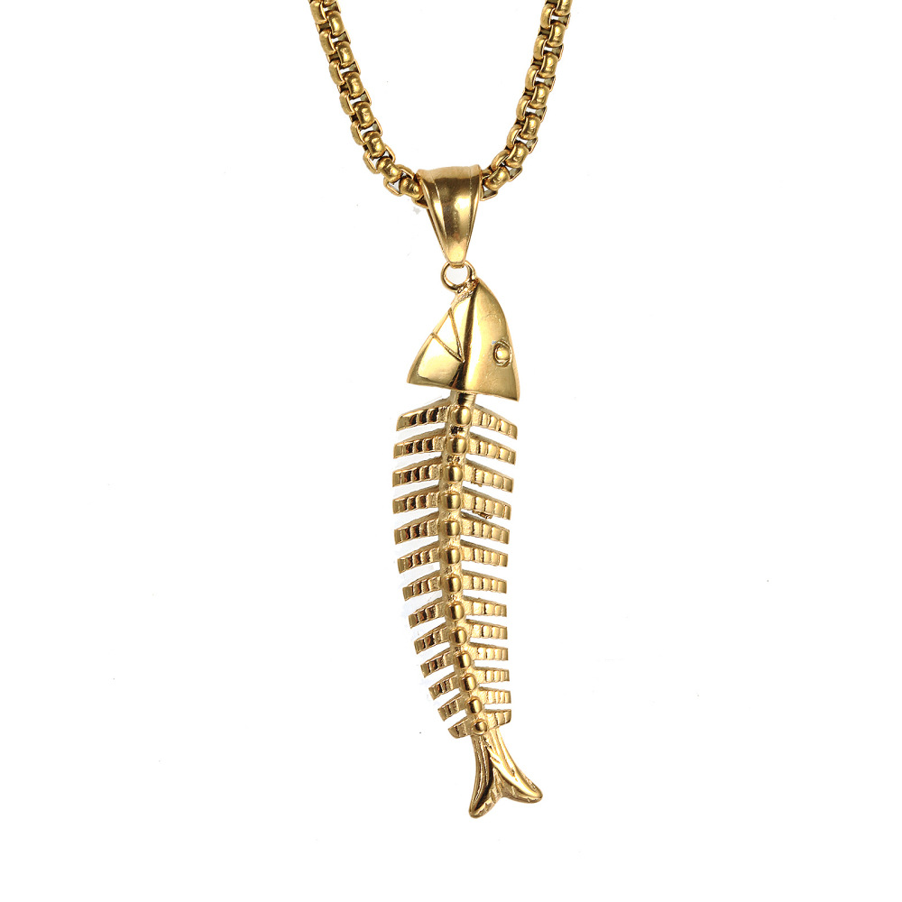 A European and American men's fish bone stainless steel pendant fashion simple titanium steel necklace cross-border Amazon explosions