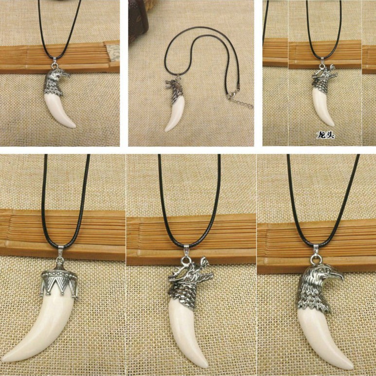 Vintage Men's Necklace for Foreign Trade, Imitation Wolf Tooth Resin Pendant, Imitation Tiger Tooth Bone Carving, Tooth Carving Pendant