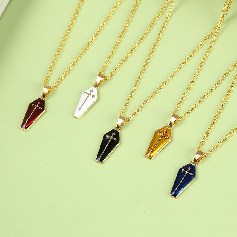European and American Cross-border Halloween Personality Retro Cross Necklace Simple Oil Dropping Multicolor Pendant for Men and Women Wholesale