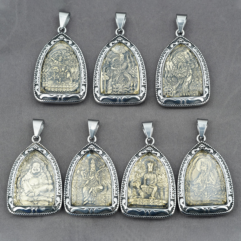 Thai Buddha Amulet, Dojie, Guan Gong, Pi Xiu Maitreya Buddha, Ksitigarbha, Lotus Layman, Big Black Sky Men's Necklace