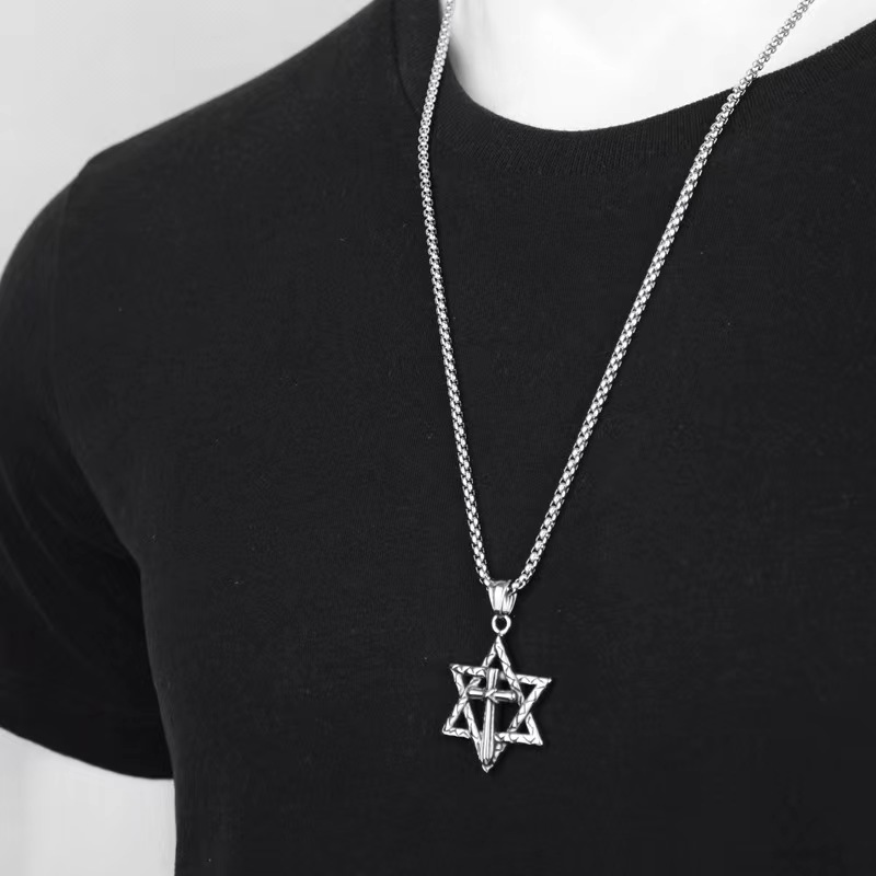 European and American fashion Men's hip hop fashion personality retro titanium steel necklace pendant six-pointed star sweater chain accessories pendant