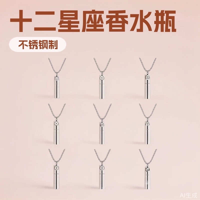 Twelve Zodiac Perfume Bottle Necklace Men's Trendy Personalized Titanium Steel Pendant Men's Essential Oil Pendant Decoration Trendy Constellation