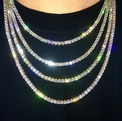 European and American Hip-Hop Rhinestone Necklace, Men's and Women's Hip-Hop, Full Rhinestone Single Row Wish Hot Selling Fashionable and Exquisite Jewelry