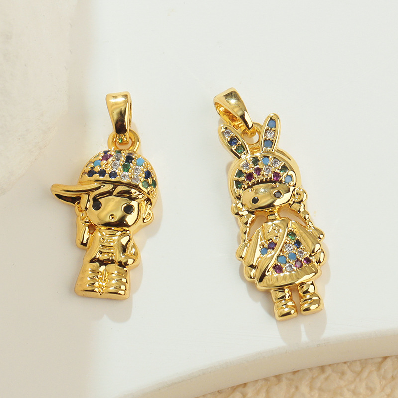 Niche Design Cartoon Doll Hat Zircon Couple Pendant Necklace European and American Stylish Boy Girl Clavicle Chain