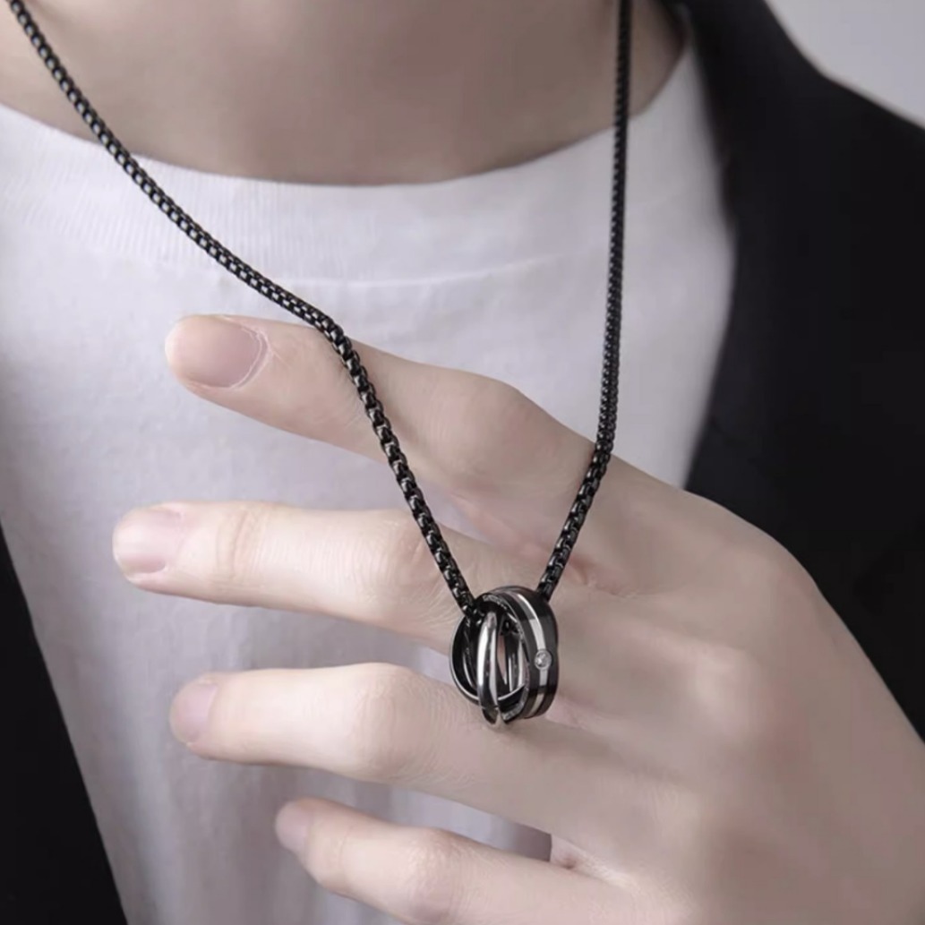 Necklace men's simple men's pendant men's fashion brand all-match titanium steel high-grade accessories double ring pendant sweater chain
