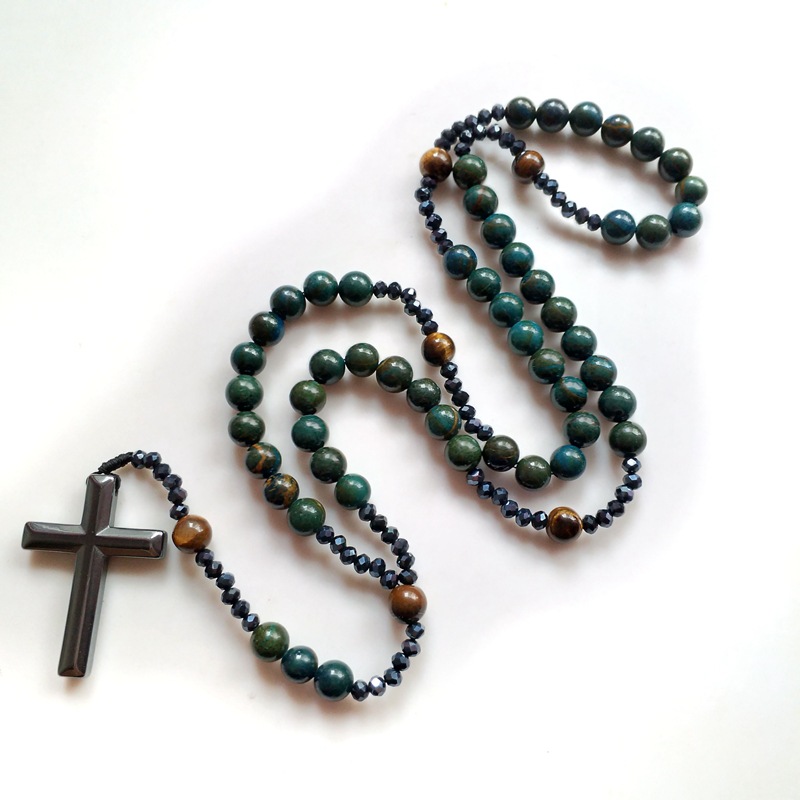 AliExpress Hot Jewelry Stone Beaded Cross Necklace European and American Style Long Trendy Men's sweater Chain