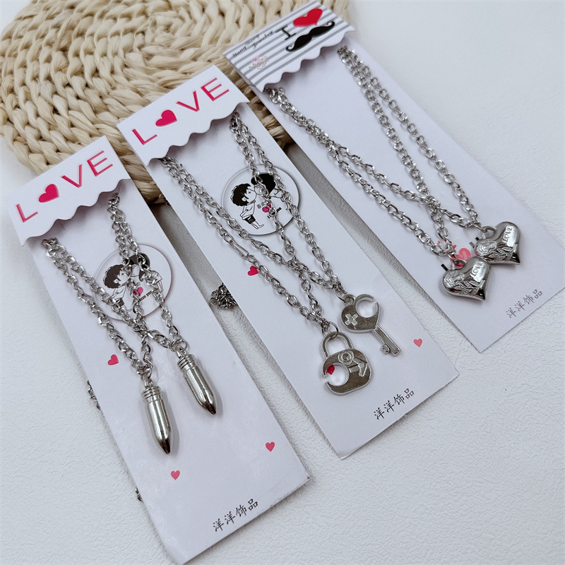 2 yuan store boys necklace double pack couple girlfriends student chain necklace love key lock pendant jewelry