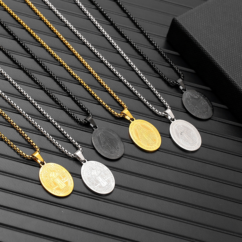 Cross-Border E-Commerce Supply Stainless Steel Oval Brand Angel Portrait Pendant Necklace Men's Double-Sided Corrosion Logo