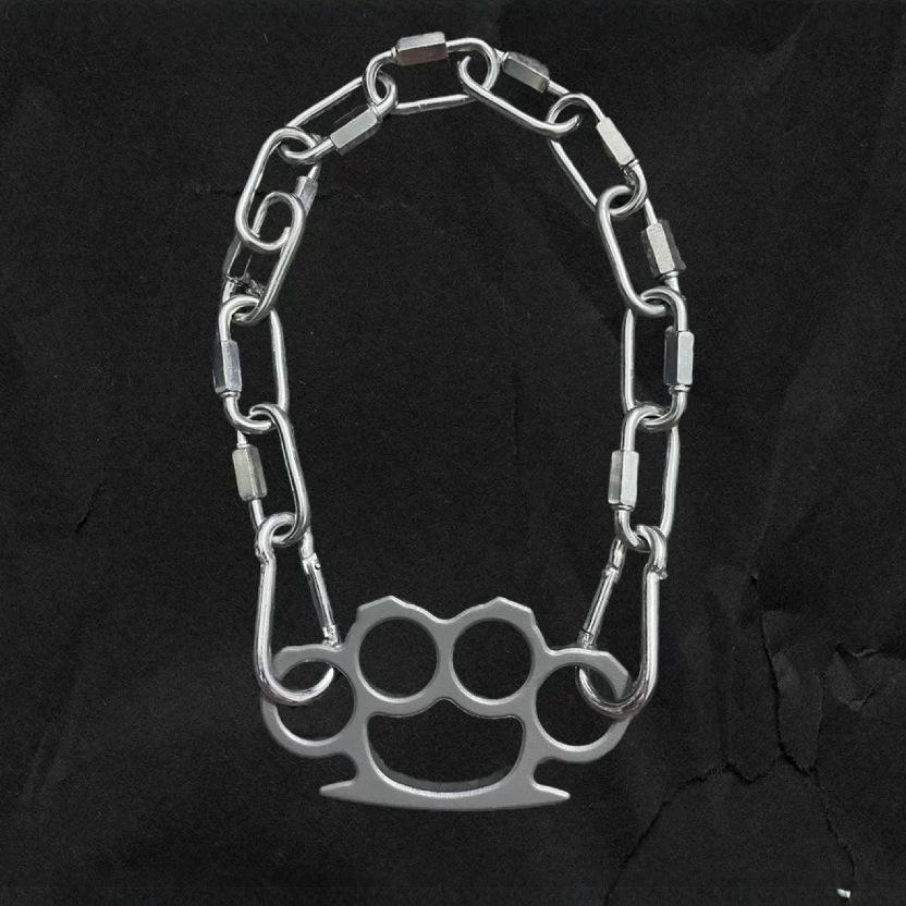 European, American, Japanese and Korean nightclub bar hip-hop rock personality trend fist titanium steel necklace ornaments men's and women's 3014