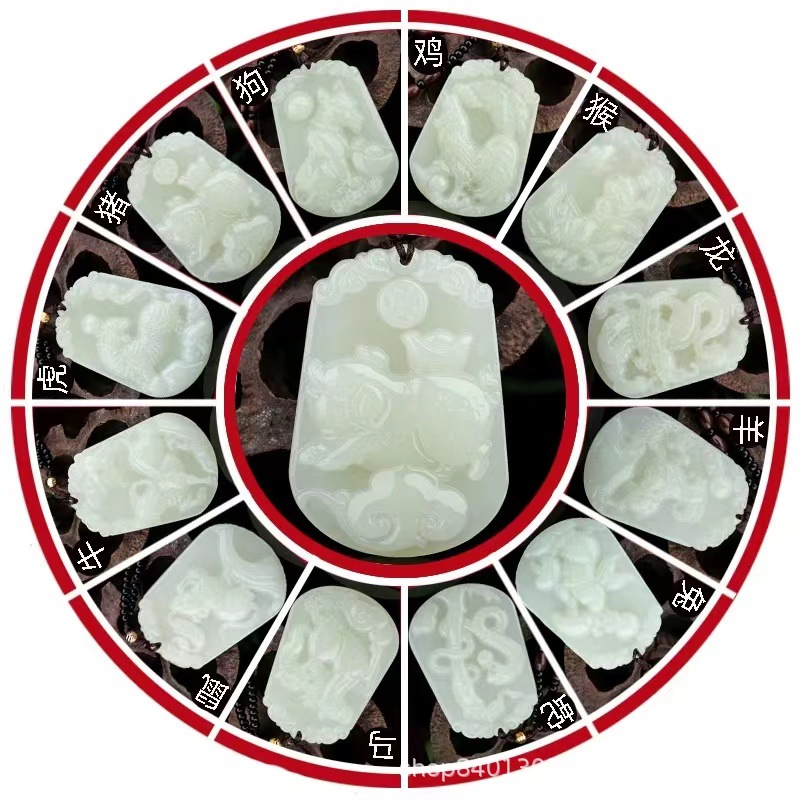 Zodiac jade pendant men's and women's jade pendant necklace Afghanistan white jade this year zodiac pendant wholesale