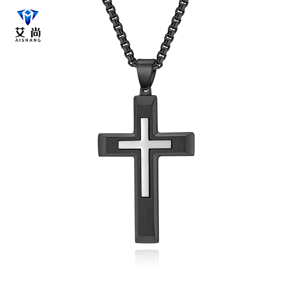 European and American Cross-Border Hot-Selling Stainless Steel Cross Necklace Men's Non-Fading Personalized Hip-Hop Jewelry Women's Jewelry Wholesale
