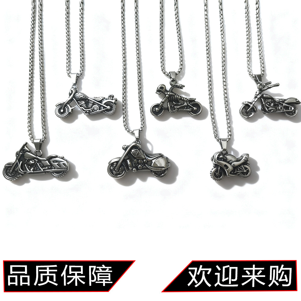 Cross-Border Personalized Stainless Steel Skull Motorcycle Necklace Pendant Retro Cool Men's Motorcycle Pendant Necklace