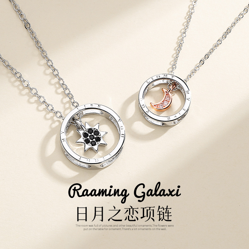 Runxin Sun Moon Love Couple Necklace Student Long-distance Love Lover Gift Men's and Women's Diamond Sun Moon Pendant
