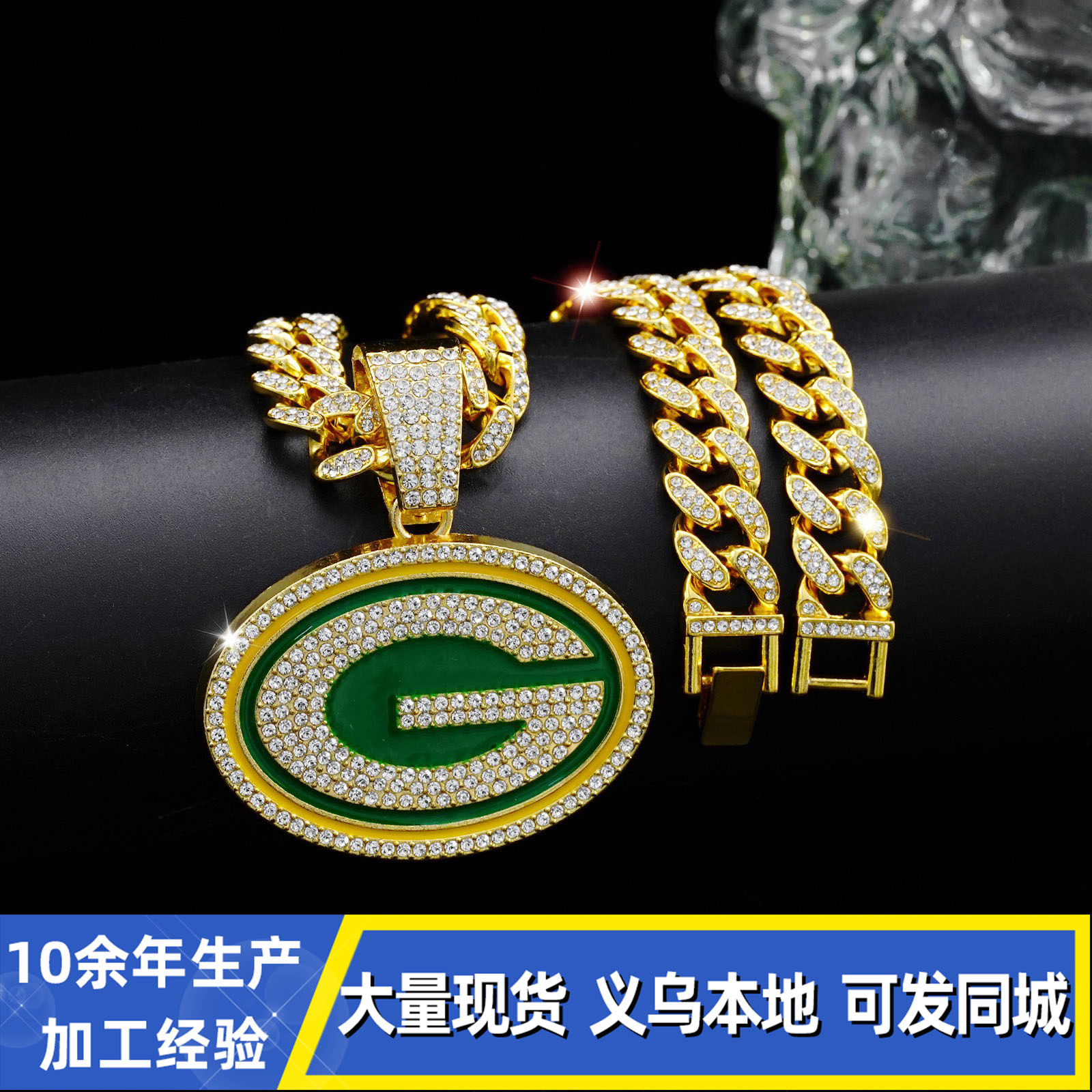 European and American Jewelry Boys Hip-Hop Full Diamond Cuban Chain Fashion Stylish Oil Dripping Letter g Round Medal Necklace Pendant Wholesale