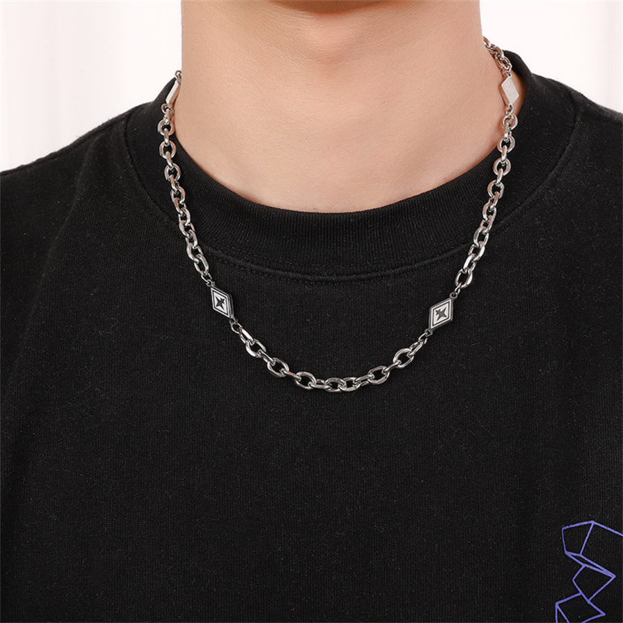 Geometric Pendant Titanium Steel Necklace for Men and Women Trendy Ins Hip-Hop Boys Light Luxury Niche Simple Versatile Jewelry Sweater Chain