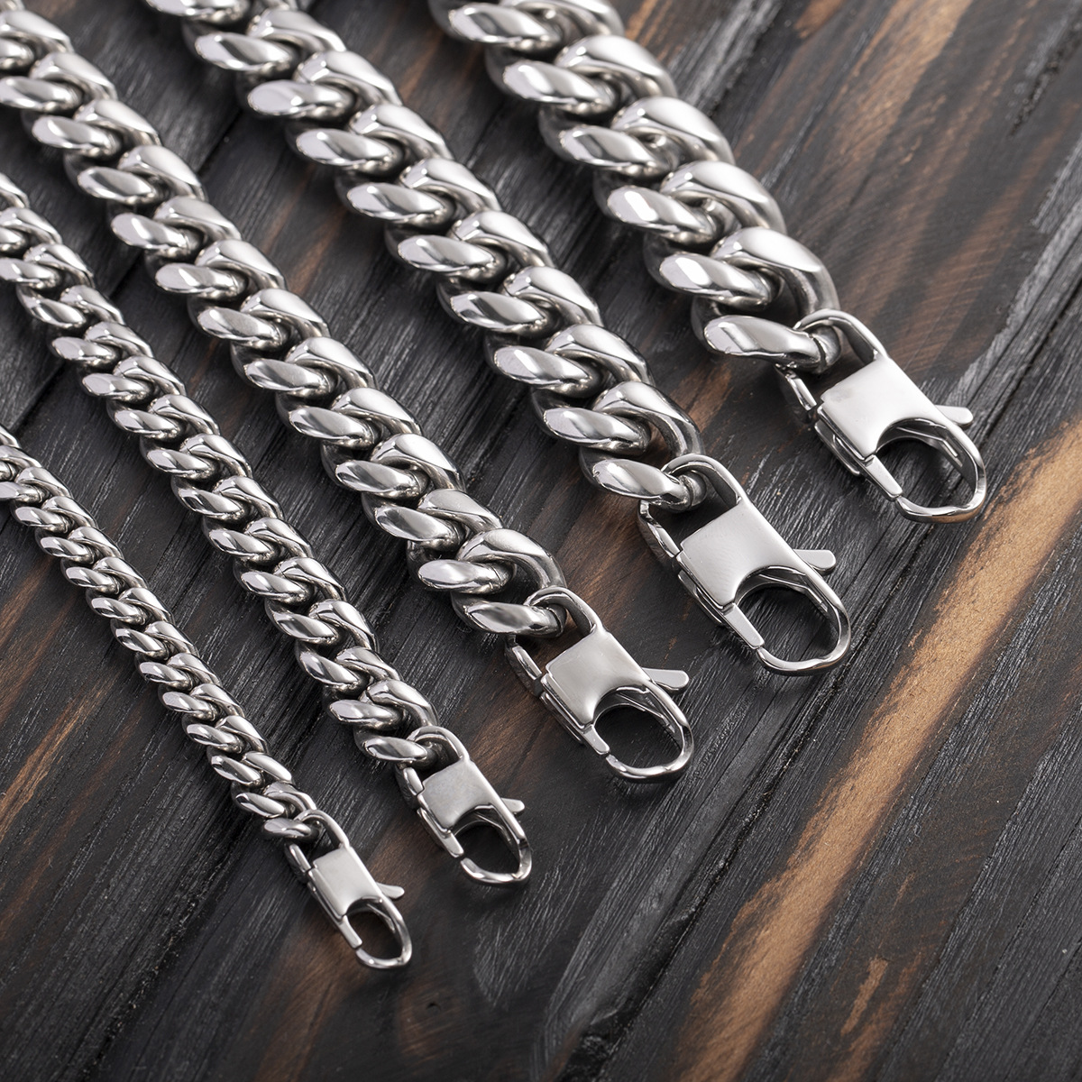 European and American Cross-border Hip-hop Stainless Steel Cuban Chain Necklace Japanese Buckle Round Grinding Encrypted Titanium Steel Chain Men's Clothing Accessories