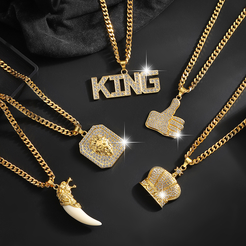 Cross-Border New Hip-Hop Nightclub Pendant European and American Fashion Trend Personalized Men's King Letter Necklace Manufacturer Wholesale