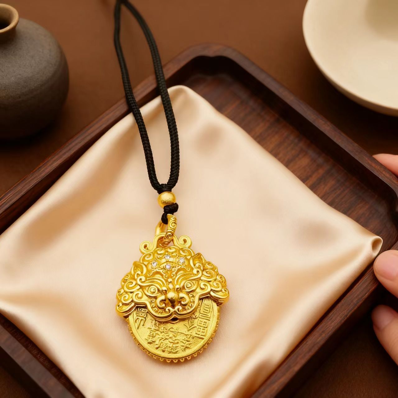 Papas New Pixiu Necklace Double Ring Men's Trendy Retro Pendant Necklace Niche Design Chinese Style