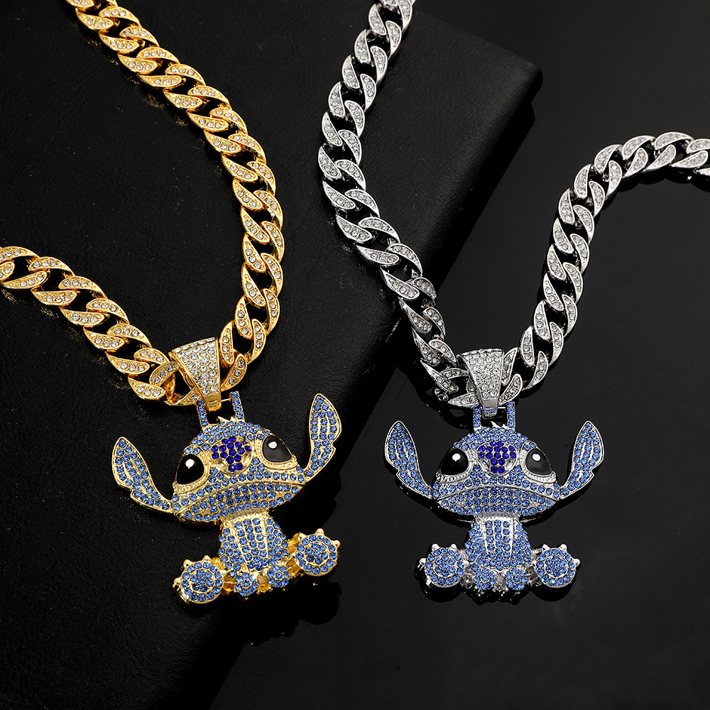 Cross-border jewelry boys hip-hop full-diamond rhinestone necklace fashion personality Stitch Stitch pendant