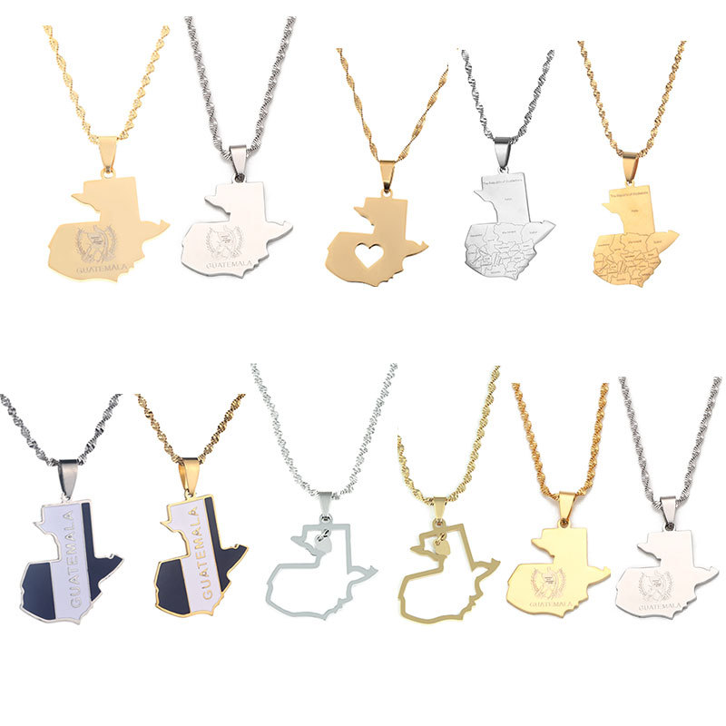 Guatemala map stainless steel pendant necklace men and women fashion boutique stainless steel pendant necklace cross border