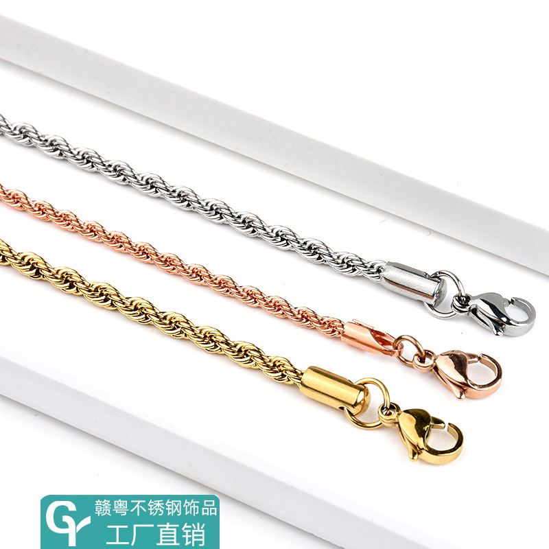 Factory direct stainless steel twist chain vacuum plating non-fading gold necklace titanium steel hip-hop men's chain