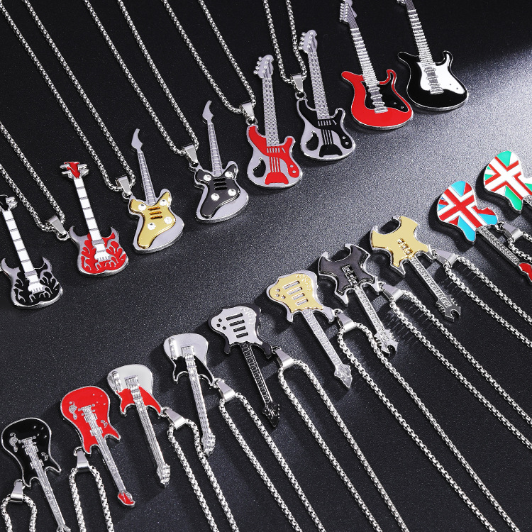 New Guitar Pendant Necklace for Men, Colorful Oil-Drip Alloy Instrument Stainless Steel Pendant DIY Jewelry Accessories for Women