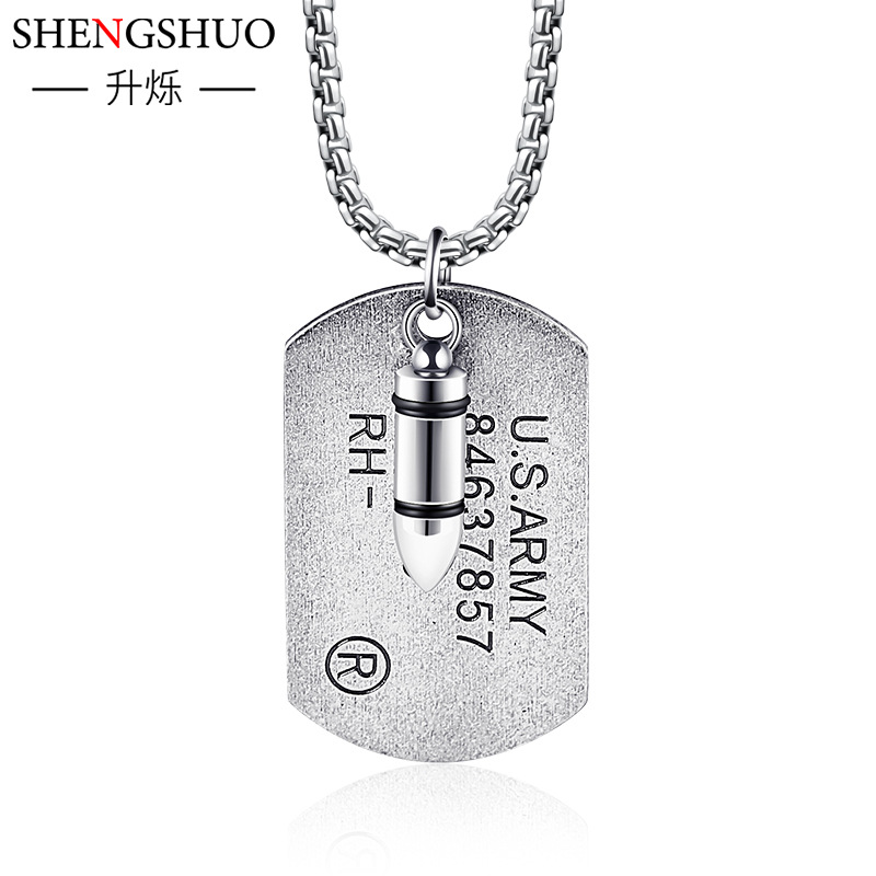 Military brand bullet titanium steel men's necklace stainless steel pendant does not fade European and American jewelry wholesale accessories retro tide