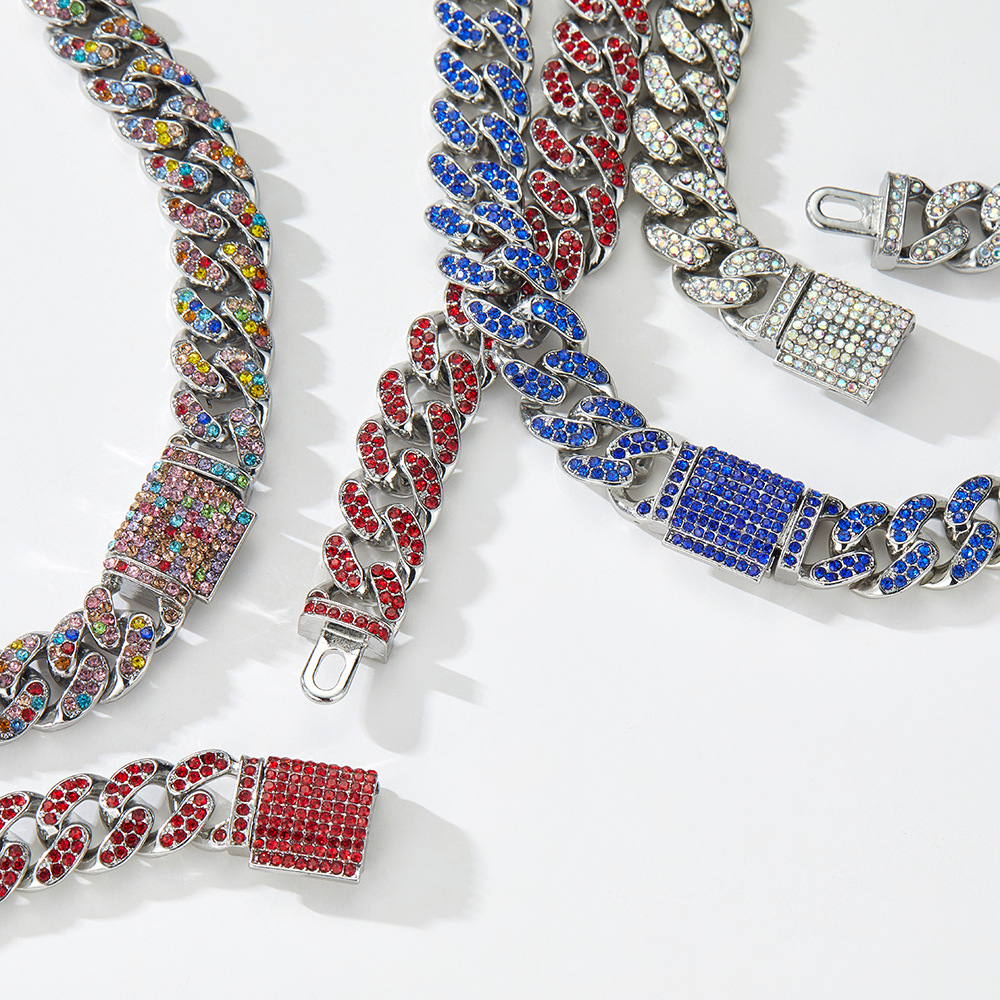 New Men's hiphop color zinc alloy rhinestone necklace exaggerated full Diamond luxury Hip Hop disco nightclub personality