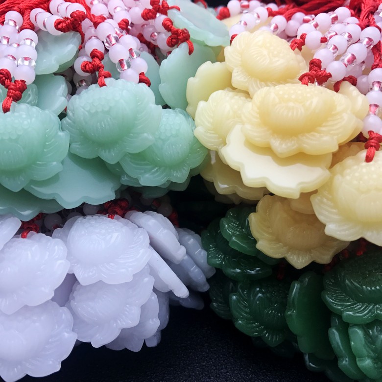 New Imitation Jade Lotus Pendant Ethnic Style Safe Buckle Lucky Pixiu Men's and Women's Jade Necklace Small Gift Pendant