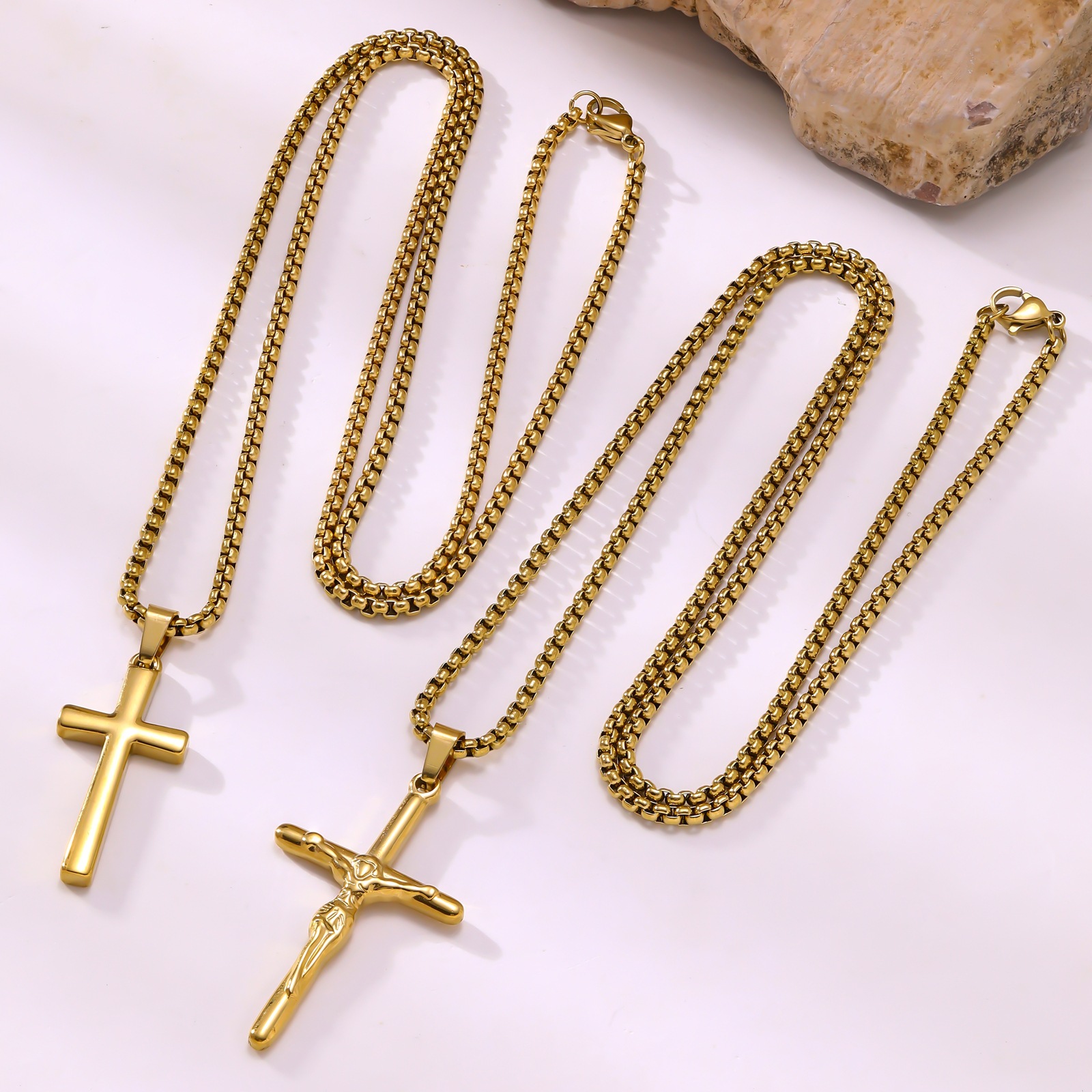 European and American men's titanium steel necklace welding two-color cross pendant simple personality sweater chain female stainless steel jewelry