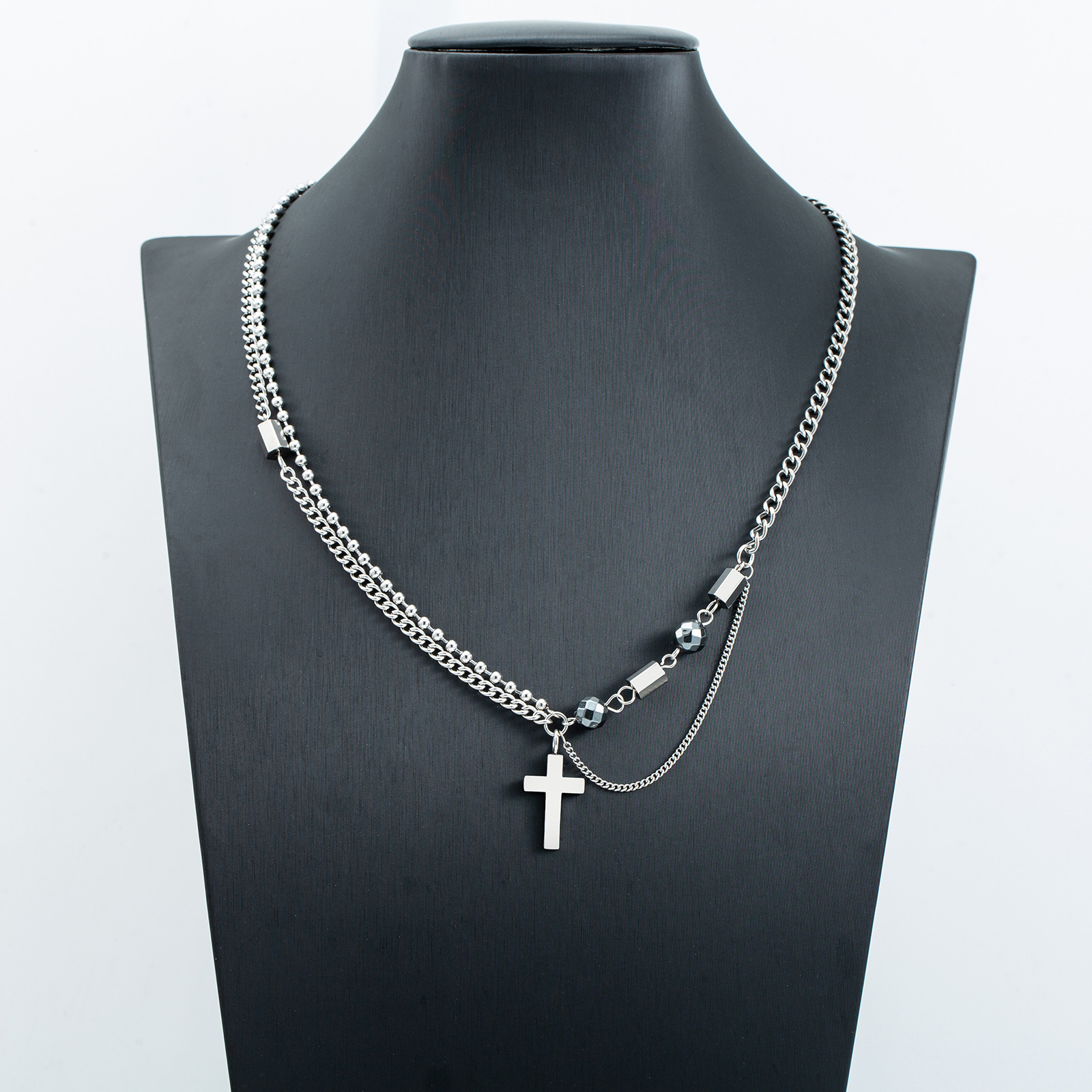 Cross-border New Pendant European and American Fashion Cool Men's Titanium Steel Stitching Beaded Cross Necklace Factory Spot