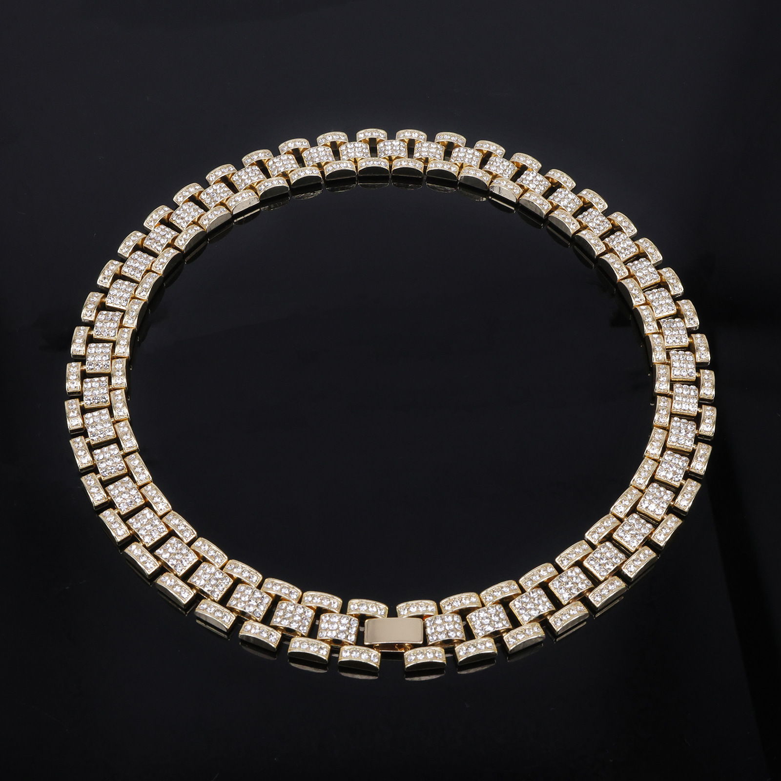 European and American 16mm Watch Chain Alloy Diamond Men's Necklace High-End Stylish Cool Cross-Border Hip-Hop Cuban Chain