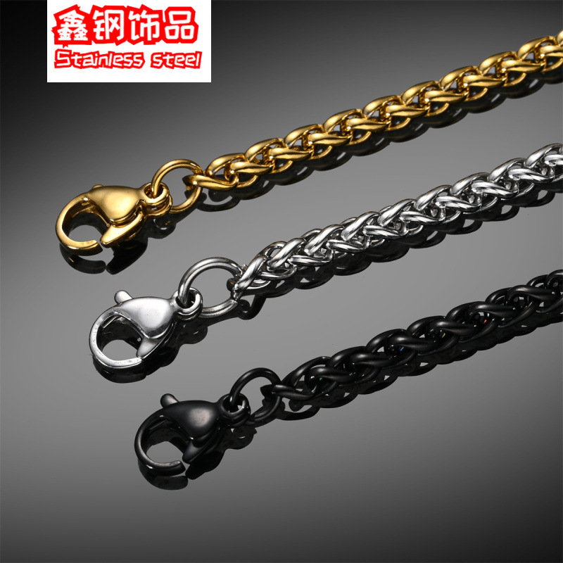 European and American stainless steel necklace men's diy jewelry chain titanium steel 18K gold twist square pearl necklace Black