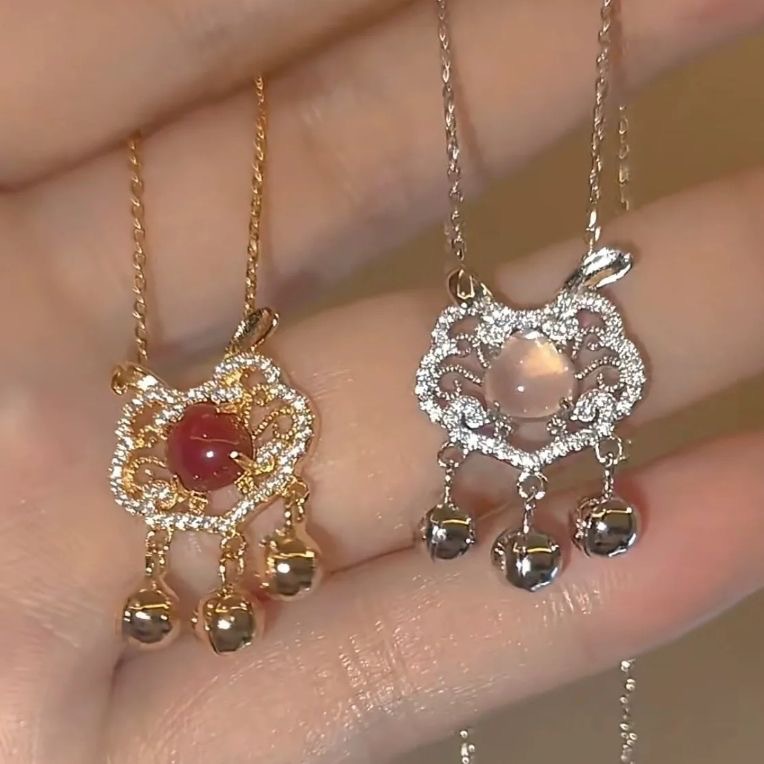 New Chinoiserie Bunny Safety Lock Necklace for Women, Light Luxury Niche Rabbit Ears Bell Clavicle Chain Bestie Birthday Gift