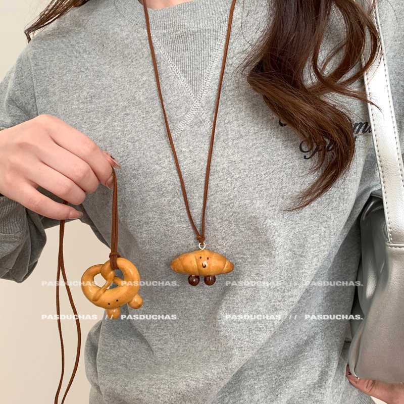 Cute Niche Design Alkaline Knot Bread Pendant Necklace Women's Autumn and Winter Croissant Long Sweater Chain Accessories Sweater Chain